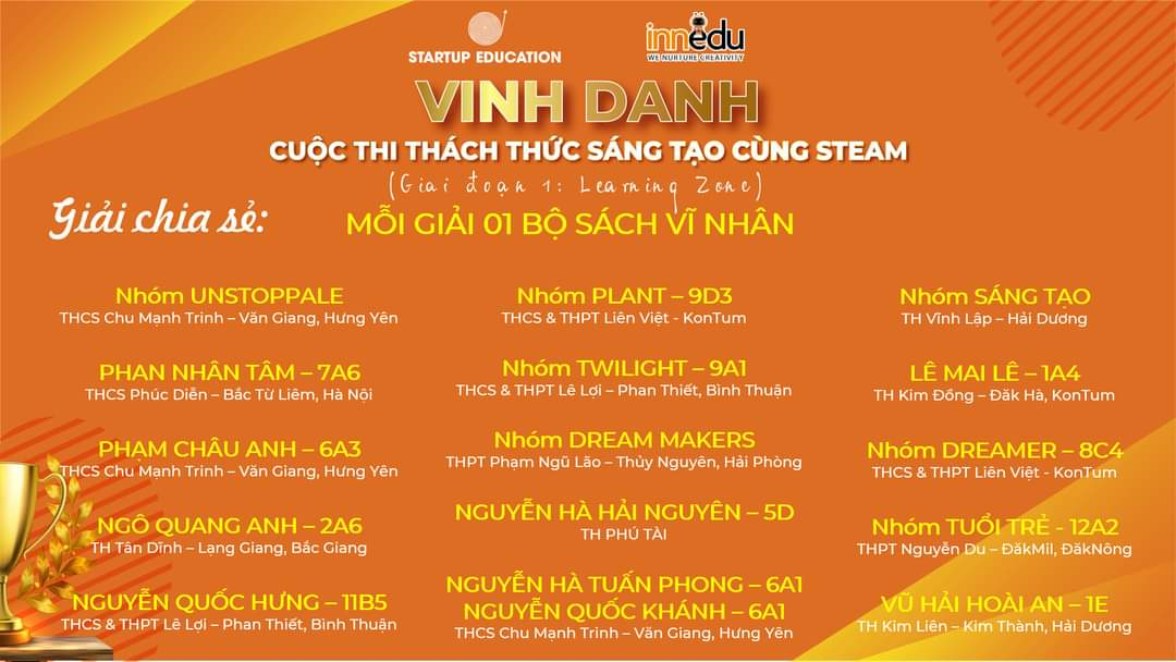 Vào ngày 1/3/2022, Ban tổ chức cuộc thi “Thách thức sáng tạo cùng STEAM” đã công bố 46 sản phẩm đạt giải trong tổng số 1700 sản phẩm dự thi. Học sinh trường THCS – THPT Liên Việt Kon Tum có 4 sản phẩm đạt giải.