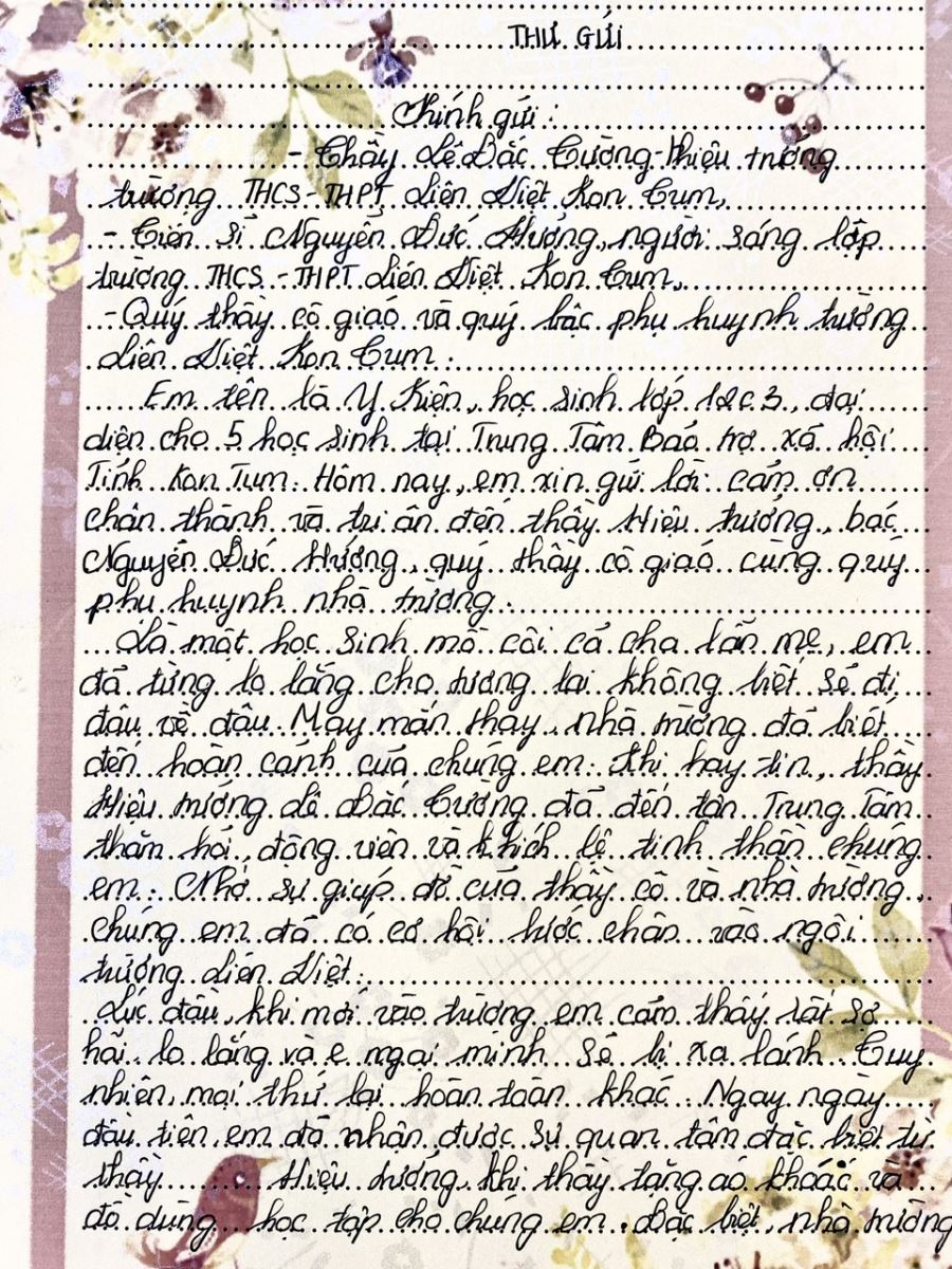 THƯ CẢM ƠN CỦA HIỆU TRƯỞNG TRƯỜNG THCS VÀ THPT LIÊN VIỆT KON TUM GỬI QUÝ BẬC PHỤ HUYNH HỌC SINH, HỌC SINH VÀ CÁN BỘ, GIÁO VIÊN, NHÂN VIÊN!