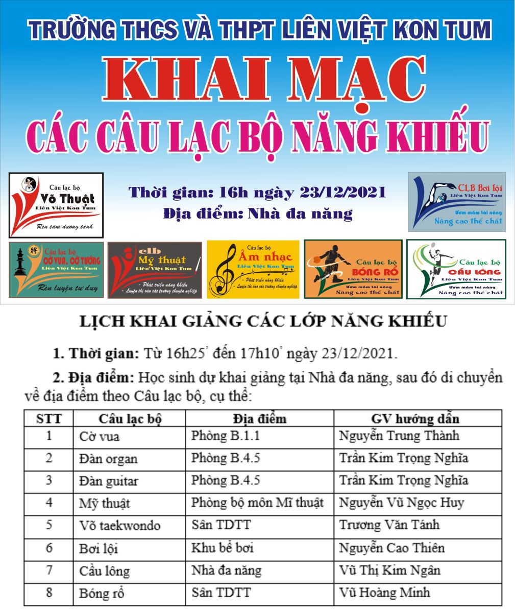 TRƯỜNG THCS VÀ THPT LIÊN VIỆT KON TUM KHAI GIẢNG CÁC LỚP NĂNG KHIẾU