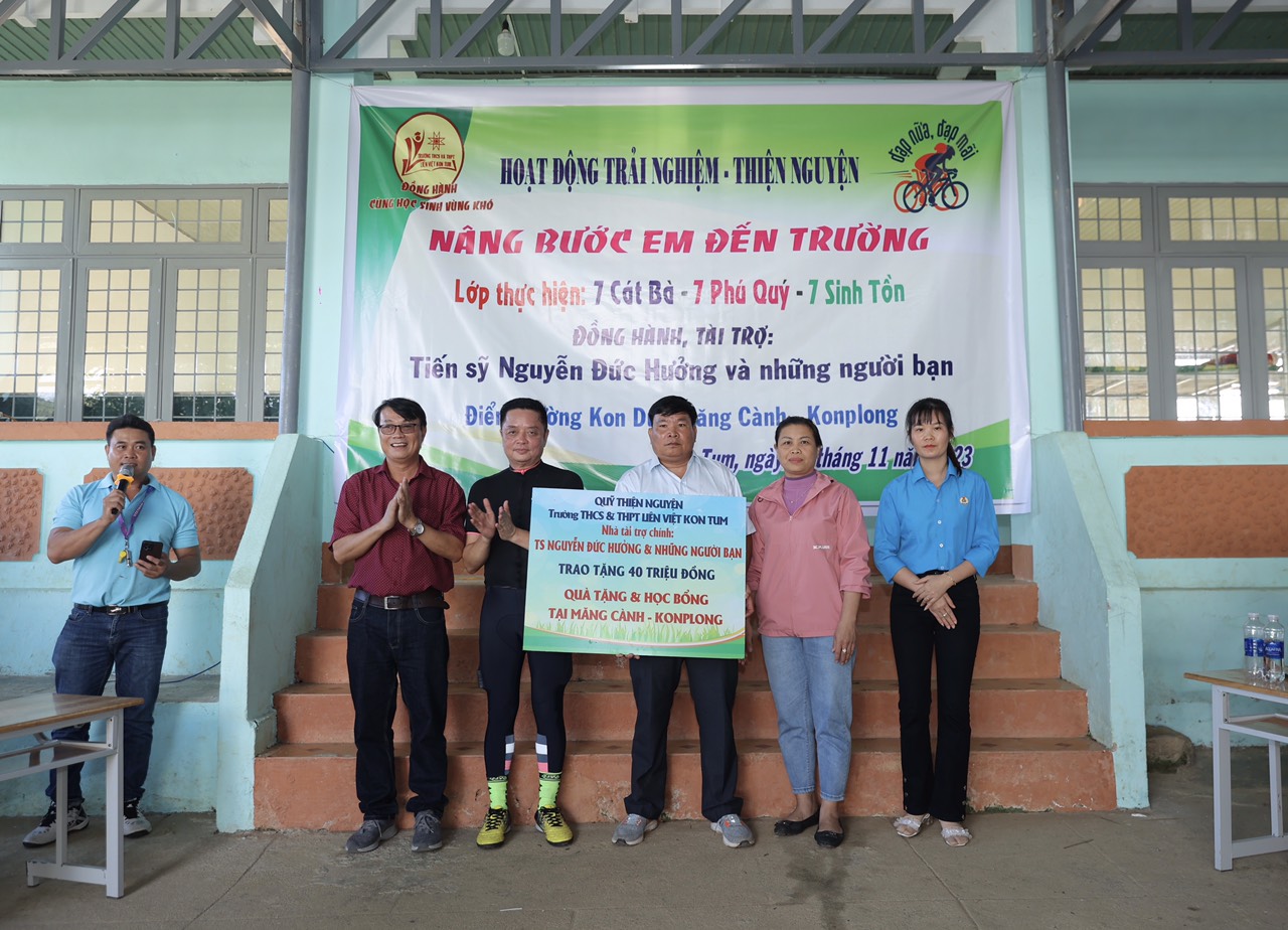 Ngoài số tiền trên, ông Hưởng còn hỗ trợ 60 triệu đồng cho Trường THCS và THPT Liên Việt Kon Tum làm quỹ để hỗ trợ hoạt động trải nghiệm tại các trường vùng sâu, vùng xa trong tỉnh.