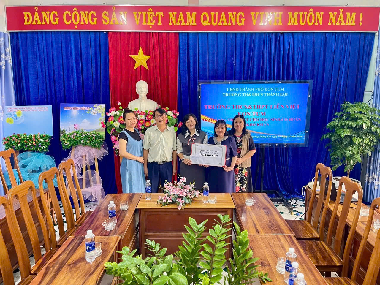 Với tinh thần “tương thân tương ái,” Trường THCS và THPT Liên Việt Kon Tum đã thực hiện chương trình trao tặng thẻ Bảo hiểm Y tế cho các học sinh có hoàn cảnh khó khăn tại các trường thuộc thành phố Kon Tum. Chương trình được thực hiện từ nguồn kinh phí của Quỹ “Vì học sinh vùng khó,” do học sinh, phụ huynh, giáo viên của trường và Tiến sĩ Nguyễn Đức Hưởng ủng hộ, với tổng số tiền 35 triệu đồng.